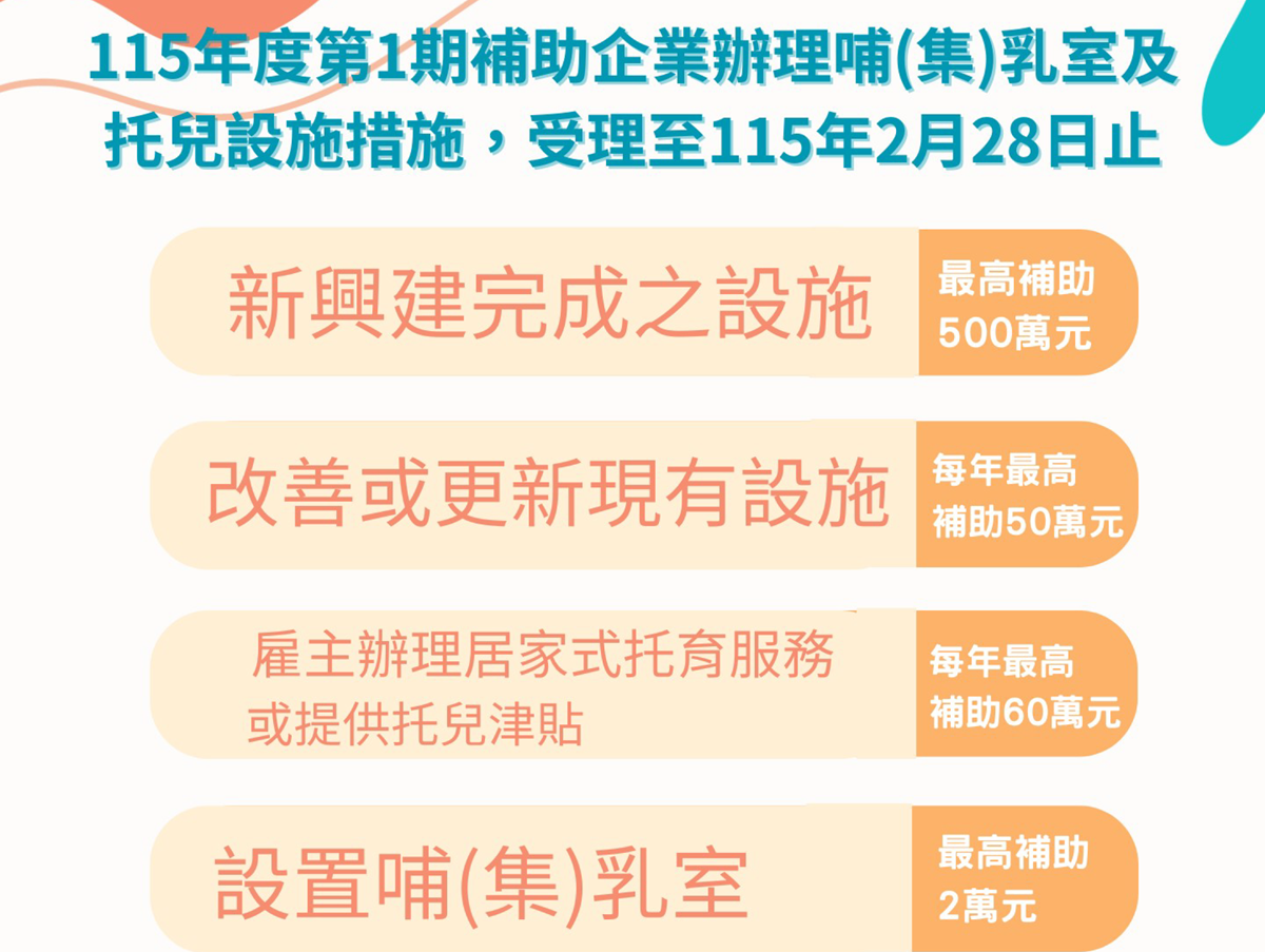 勞動部為鼓勵雇主設置哺(集)乳室及托兒設…