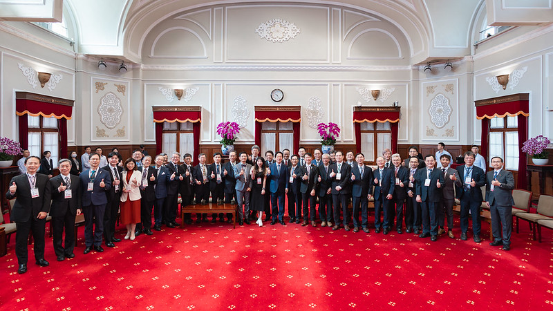 2025第40屆世界洋服同業聯盟代表團一行由中華民國洋服同業總會理事長陳志烽率領,經濟部次長賴建信陪同,前來總統府拜會蕭副總統。2025/12/04