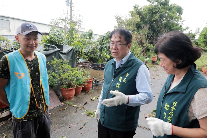 【記者邵潤玲/台南】為協助丹娜絲颱風侵襲災民儘早恢復生活,台南市政府社會局第一時間啟動災後志工媒合機制,集結志工人力展開家園復原與環境清理工作。今(20)日社會局媒合20位志工前往南區明興路,協助一位年邁獨居的郭姓長者清理受損住家。台南市長黃偉哲與社會局長郭乃文親赴現場關懷災民,並向志工表達感謝。現場志工群有一位楊同學,特地從北部來協助災民整理家園,黃偉哲知道後也感謝他前來幫忙。