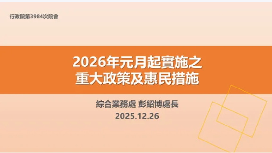 明年元月實施多項重大惠民及便民措施 卓揆盼立院儘速審查中央政府總預算案