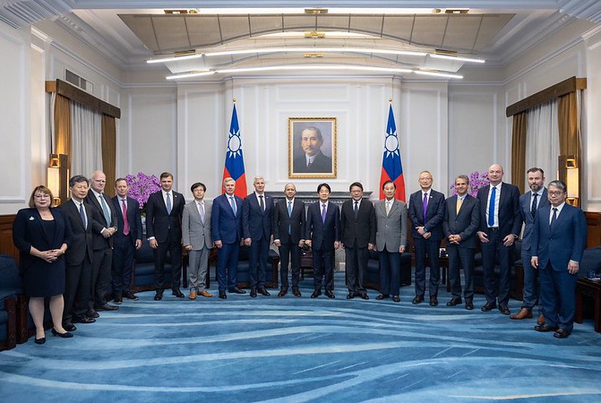 「凱達格蘭論壇-2024印太安全對話」訪賓一行,尚包括拉脫維亞北歐政策中心主席裴博理(Artis Pabriks)、愛沙尼亞國會議員賴凱雷(Kalle Laanet)等,由遠景基金會董事長陳唐山及外交部次長吳志中陪同,前來總統府晉見賴總統,總統府秘書長潘孟安也在座。2024/08/22