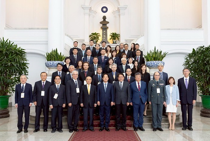 第27屆「國家生技醫療品質獎」獲獎醫護機構暨生醫產業代表一行由生策中心董事長王金平率領,衛福部長邱泰源陪同,前來總統府晉見賴總統,總統府秘書長潘孟安也在座。2025/05/12