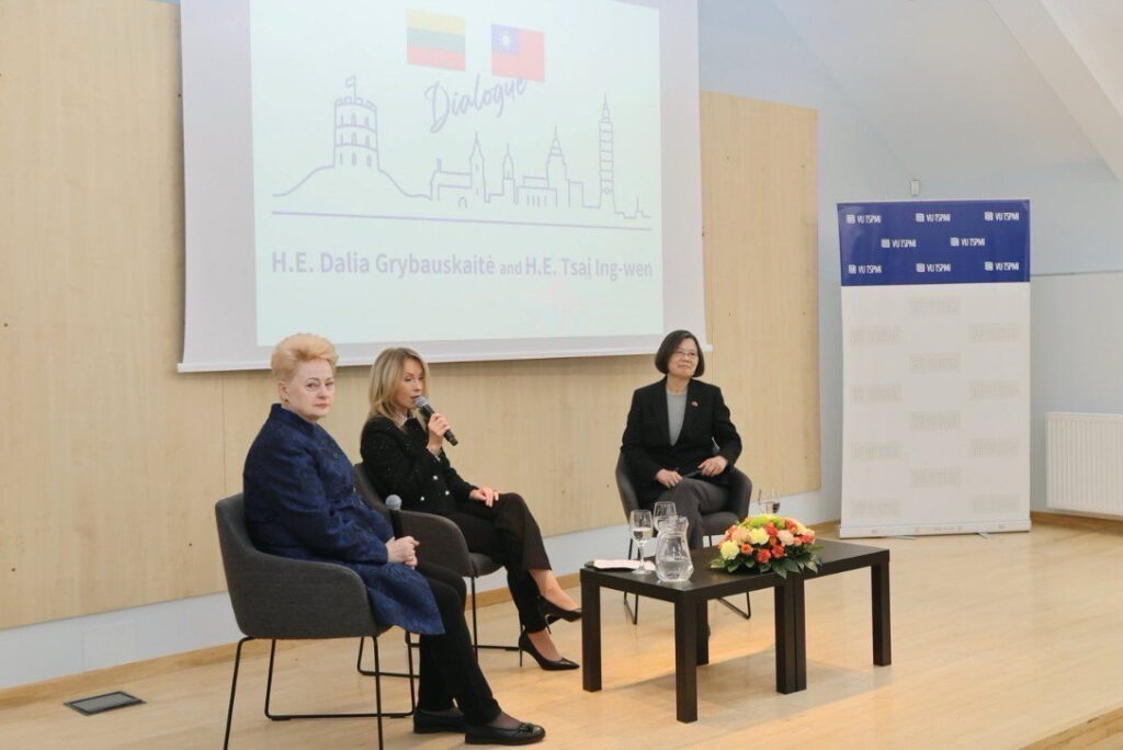 蔡英文應邀在立陶宛維爾紐斯大學國際關係及政治研究院(TSPMI)演講,並與立陶宛前總統葛寶思凱德(Dalia Grybauskaitė)對談,彰顯台立女力前瞻領導及民主夥伴共享的和平價值。蔡英文演講表示,台灣與立陶宛都經歷威權壓迫的年代,在當前全球重新平衡貿易關係、威權國家緊密聯合積極擴張的不確定時刻,彼此應更加團結並堅守共同價值,合作因應假訊息的操弄行動、關鍵基礎設施遭破壞等諸多試圖侵蝕民主制度的重大挑戰。葛寶思凱德前總統對談時則指出,國家的大小並非一切,人民的意志、勇氣與決心才是國家力量的象徵,只要隨時做好充分準備、強化實力,就能扮演促進區域穩定發展的貢獻角色。
