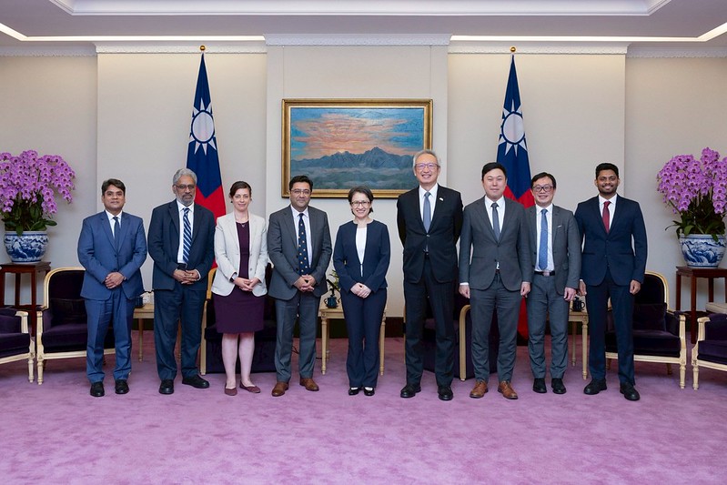 台美印三方對話訪問團一行包括戰略與防衛研究所榮譽研究員莫瑞佳(C. Raja Mohan)、亞洲協會政策研究所德里分部主任馬卡士(Akshay Mathur)等,由外交部次長吳志中陪同,前來總統府拜會蕭副總統。2025/08/01